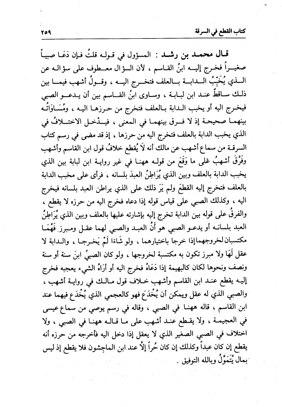 قال محمد بن رشد: المسئول في قوله قلت فإن دعا صبيا صغيرا فخرج إليه ابن القاسم؛ لأن السؤال معطوف على سؤاله عن الذي يخبب الدابة بالعلف فتخرج إليه، وقول أشهب فيما بين ذلك ساقط عند ابن لبابة، وساوى ابن القاسم بين أن يدعو الصبي فيخرج إليه أو يخبب الدابة بالعلف فتخرج من حرزها إليه، ومساواته بينهما صحيحة إذ لا فرق بينهما في المعنى، فيدخل الاختلاف في الذي يخبب الدابة بالعلف فتخرج إليه من حرزها، إذ قد مضى في رسم كتاب السرقة من سماع أشهب عن مالك أنه لا يقطع خلاف قول ابن القاسم وأشهب، وفرق أشهب على ما وقع من قوله هاهنا في غير رواية ابن لبابة بين الذي يخبب الدابة بالعلف وبين الذي يراطن العبد بلسانه، فرأى على مخبب الدابة بالعلف فتخرج إليه القطع، ولم ير ذلك على الذي يراطن العبد بلسانه فيخرج إليه، وكذلك الصبي على قياس قوله إذا دعاه فخرج إليه من حرزه لا يقطع، والفرق على قوله بين الدابة تخرج إليه بإشارته عليها بالعلف وبين الذي يراطن العبد بلسانه أو يدعو الصبي هو أن العبد والصبي لهما عقل ومبرز فهما مكتسبان لخروجهما إذا خرجا باختيارهما، ولو شاءا لم يخرجا، والدابة لا عقل لها ولا مبرز تكون به مكتسبة لخروجها، ولو كان الصبي ابن سنة أو سنة ونصف ونحوها لكان كالبهيمة إذا دعاه فخرج إليه أو أراه الشيء يعجبه فخرج إليه يقطع عند ابن القاسم وأشهب، خلاف قول مالك في رواية أشهب، والصبي الذي له عقل ويمكن أن يخدع فهو كالعجمي الذي يخدع فيهما عند ابن القاسم، قاله هاهنا في الصبي، وقاله في رسم يوصي من سماع عيسى في العجمية، ولا يقطع عند أشهب على ما قاله هاهنا في الصبي، ولا اختلاف في الصبي الصغير الذي لا يعقل إذا دخل إليه فأخرجه من حرزه أنه يقطع إن كان عبدا، وكذلك إن كان حرا إلا عند ابن الماجشون فلا يقطع إذ ليس بمال يتمول، وبالله التوفيق.
