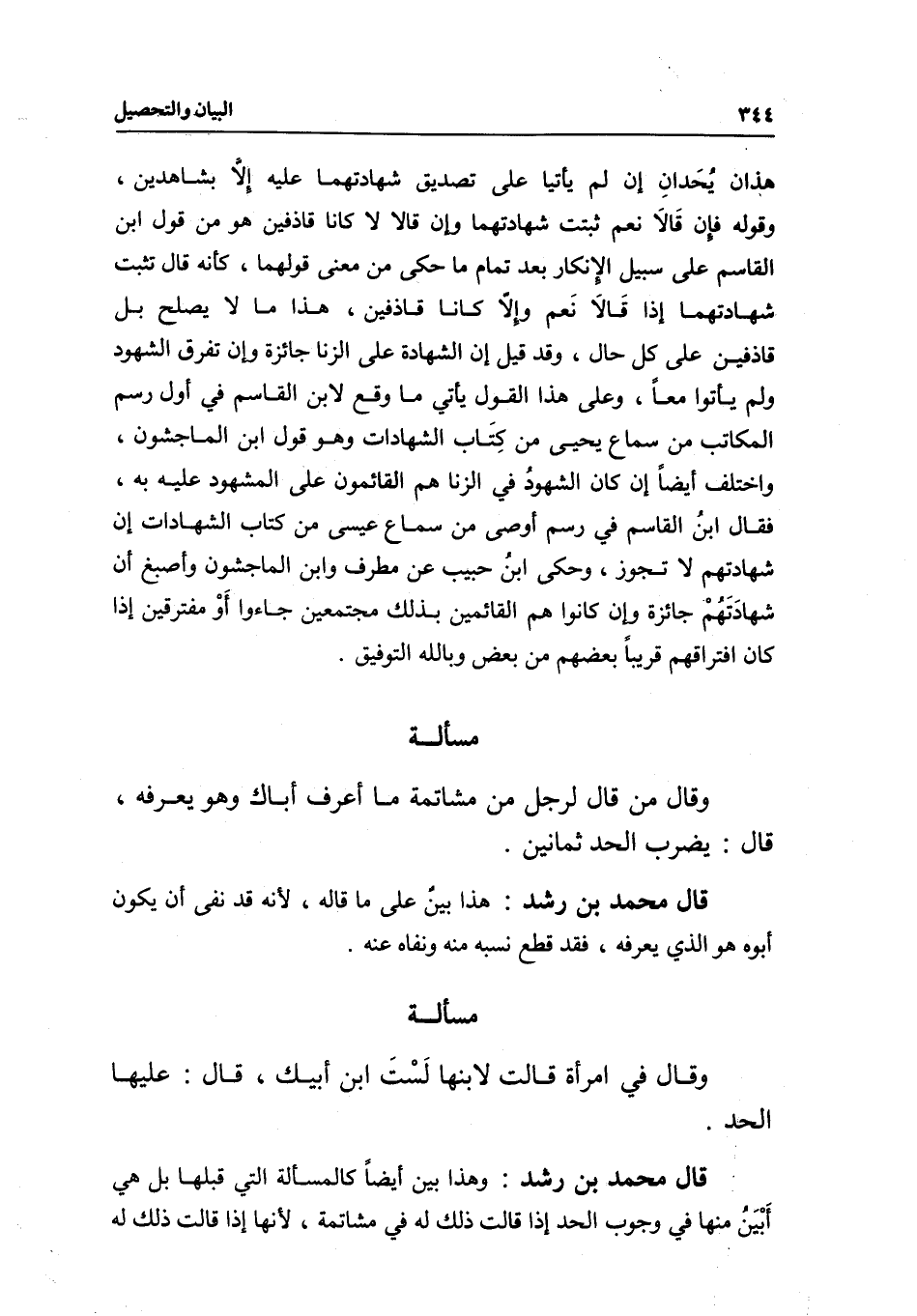 قال محمد بن رشد: وهذا بين أيضا كالمسألة التي قبلها بل هي أبين منها في وجوب الحد إذا قالت ذلك له في مشاتمة؛ لأنها إذا قالت ذلك له