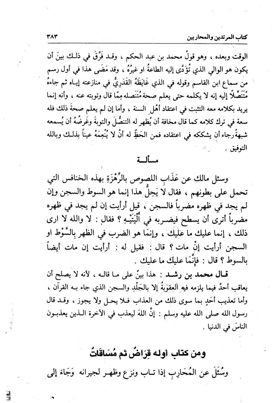 ومن كتاب أوله قراض ثم مساقات
