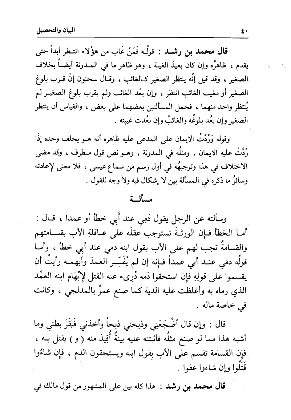 قال محمد بن رشد: هذا كله بين على المشهور من قول مالك في