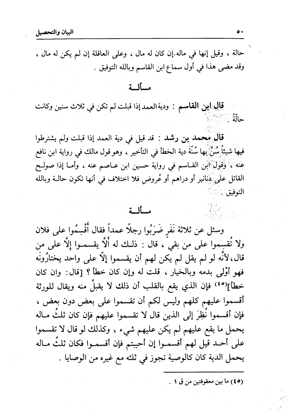 قال محمد بن رشد: قد قيل في دية العمد إذا قبلت ولم يشترطوا فيها شيئا سن بها سنة دية الخطأ في التأخير، وهو قول مالك في رواية ابن نافع عنه، وقول ابن القاسم في رواية حسين بن عاصم عنه، وأما إذا صولح القاتل على دنانير أو دراهم أو عروض فلا اختلاف في أنها تكون حالة وبالله التوفيق.