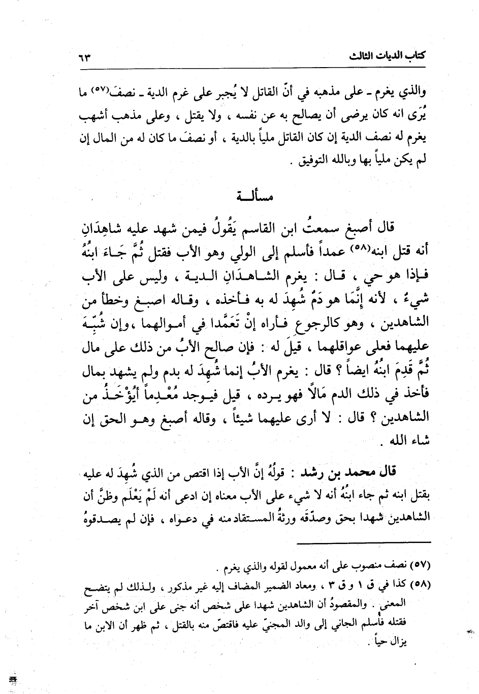 قال محمد بن رشد: قوله إن الأب إذا اقتص من الذي شهد له عليه بقتل ابنه ثم جاء ابنه أنه لا شيء على الأب معناه إن ادعى أنه لم يعلم وظن أن الشاهدين شهدا بحق وصدّقه ورثة المستقاد منه في دعواه، فإن لم يصدقوه