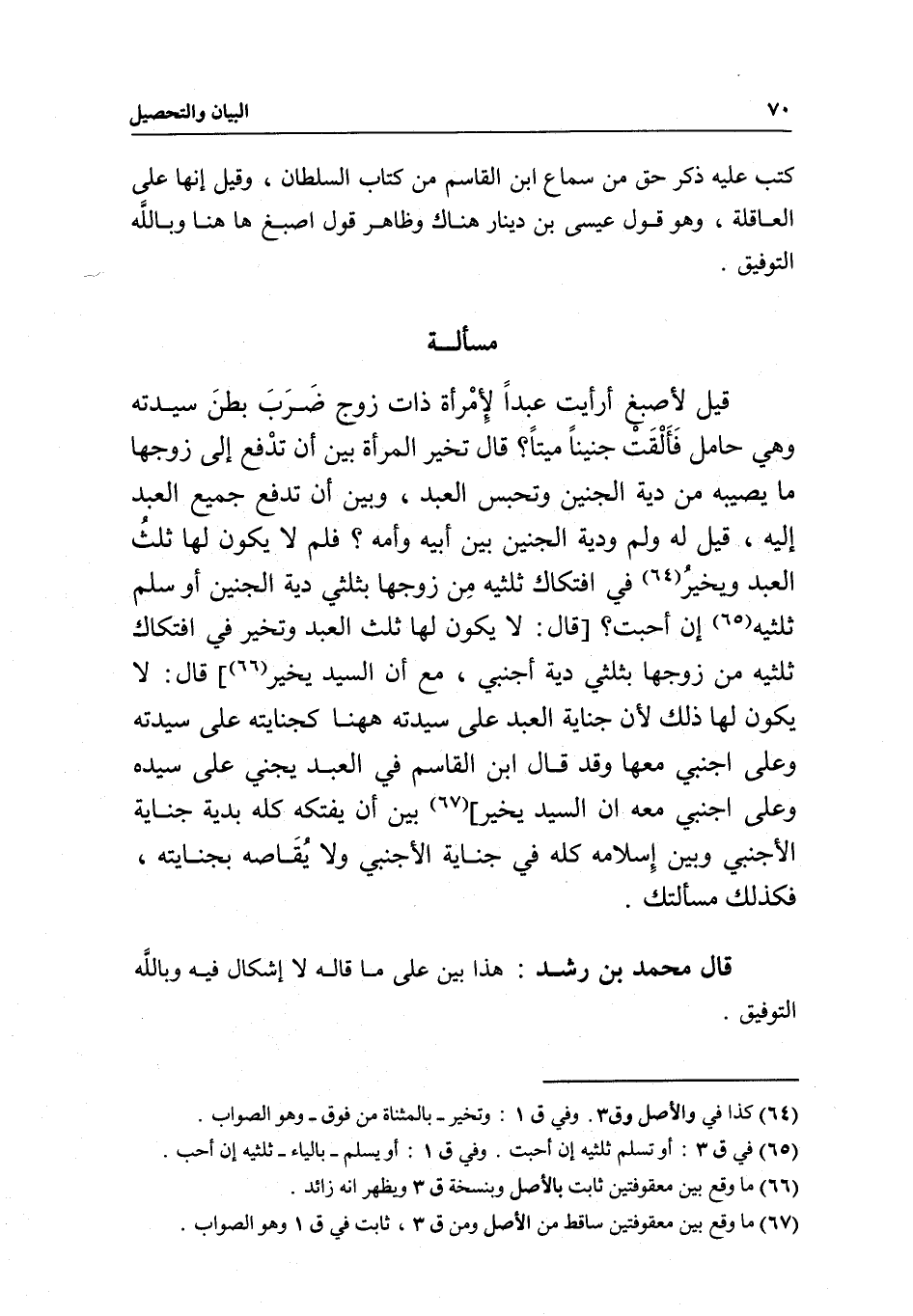 قال محمد بن رشد: هذا بين على ما قاله لا إشكال فيه وبالله التوفيق.