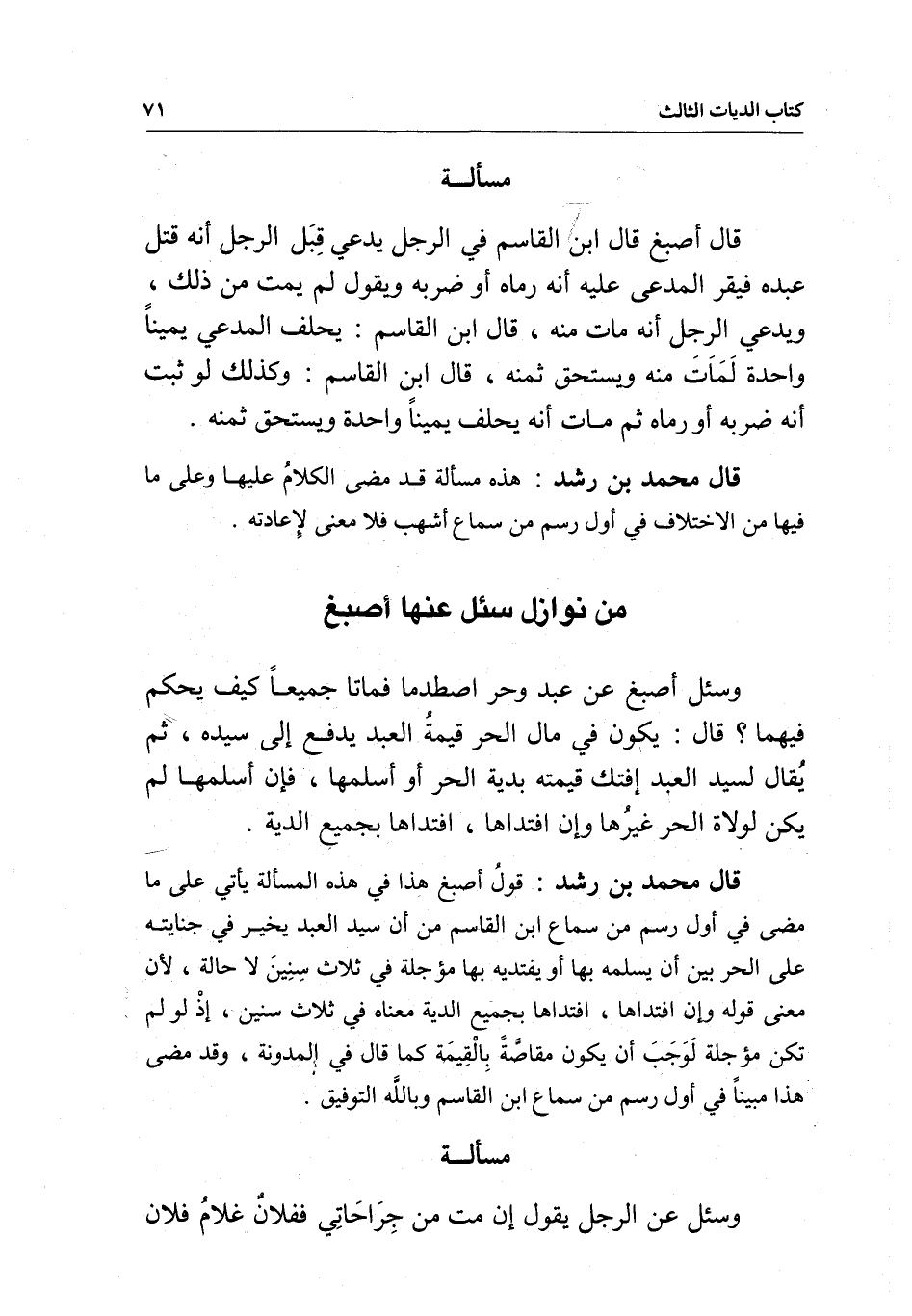 مسألة وسئل عن الرجل يقول: إن مت من جراحاتي ففلان غلام فلان