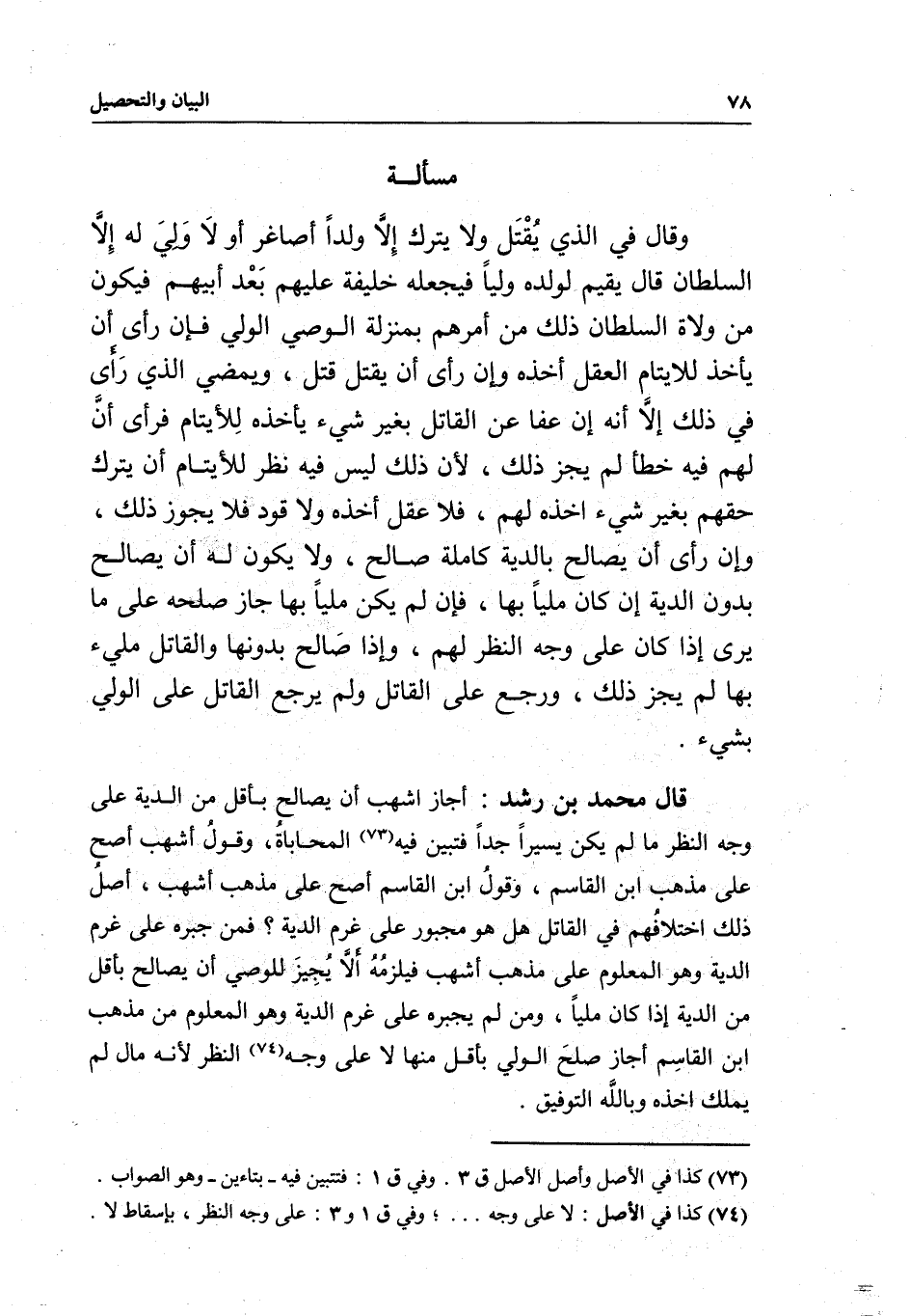 قال محمد بن رشد: أجاز أشهب أن يصالح بأقل من الدية على وجه النظر ما لم يكن يسيرا جدا فتبين فيه المحاباة، وقول أشهب أصح على مذهب ابن القاسم، وقول ابن القاسم أصح على مذهب أشهب، أصل ذلك اختلافهم في القاتل هل هو مجبور على غرم الدية؟ فمن جبره على غرم الدية وهو المعلوم على مذهب أشهب فيلزمه ألا يجيز للوصي أن يصالح بأقل من الدية إذا كان مليا، ومن لم يجبره على غرم الدية وهو المعلوم من مذهب ابن القاسم أجاز صلح الولي بأقل منها لا على وجه النظر لأنه مال لم يملك أخذه وبالله التوفيق.