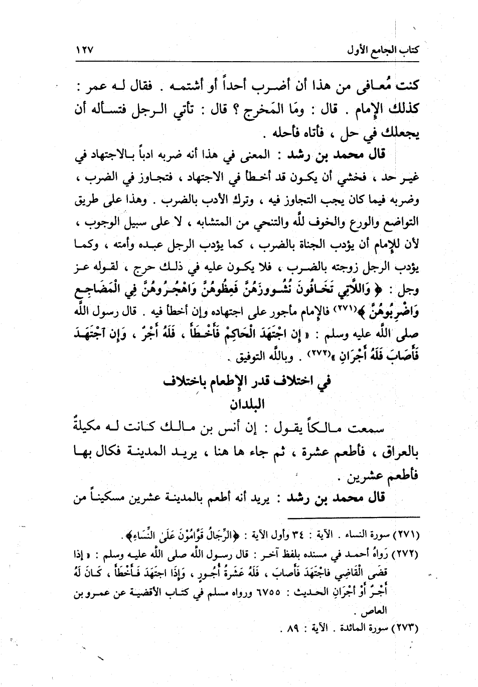 قال محمد بن رشد: المعنى في هذا أنه ضربه أدباً بالاجتهاد في غير حد، فخشي أن يكون قد أخطأ في الاجتهاد، فتجاوز في الضرب، وضربه فيما كان يجب التجاوز فيه، وترك الأدب بالضرب. وهذا على طريق التواضع والورع والخوف للَّه والتنحي من المتشابه، لا على سبيل الوجوب؛ لأن للإمام أن يؤدب الجناة بالضرب، كما يؤدب الرجل عبده وأمته، وكما يؤدب الرجل زوجته بالضرب، فلا يكون عليه في ذلك حرج، لقوله عز وجل: {وَاللاتِي تَخَافُونَ نُشُوزَهُنَّ فَعِظُوهُنَّ وَاهْجُرُوهُنَّ فِي الْمَضَاجِعِ وَاضْرِبُوهُنَّ} [النساء: 34] فالِإمام مأجور على اجتهاده وإن أخطأ فيه. قال رسول اللَّه - صَلَّى اللَّهُ عَلَيْهِ وَسَلَّمَ -: «إِن اجْتهَدَ الْحَاكِمْ فَأخطَأ، فَلَهُ أجْرٌ، وَإِن أجْتَهَدَ فَأصابَ فَلَهُ أجْرَانِ» . وباللَّه التوفيق.