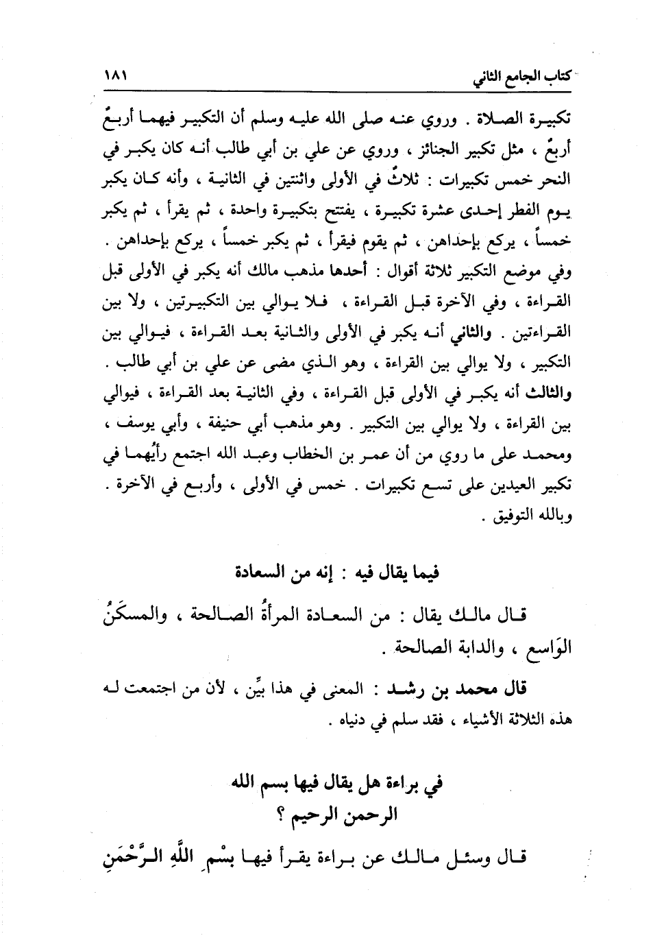 في براءة هل يقال فيها بِسْمِ اللَّهِ الرَّحْمَنِ الرَّحِيمِ؟ قال وسئل مالك عن براءة يقرأ فيها بسْم اللَّهِ الرَّحْمَنِ