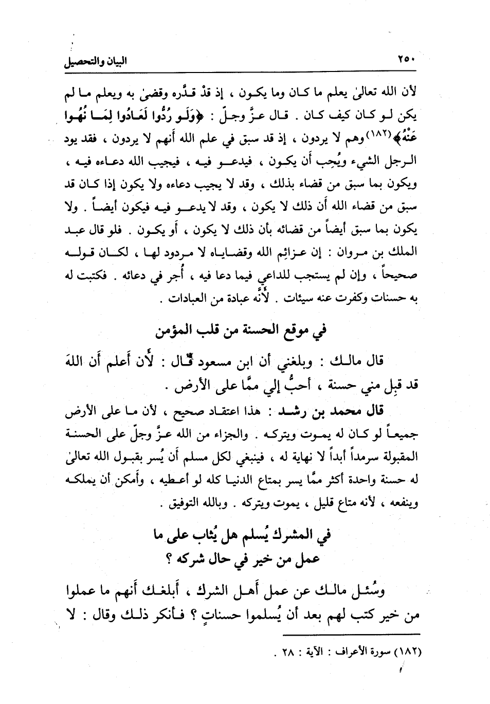في المشرك يُسلم هل يُثاب على ما عمل من خير في حال شركه؟ وسُئل مالك عن عمل أَهل الشرك، أَبلغك أَنهم ما عملوا من خير كتب لهم بعد أن يسلموا حسناتٍ؟ فأنكر ذلك وقال: لا