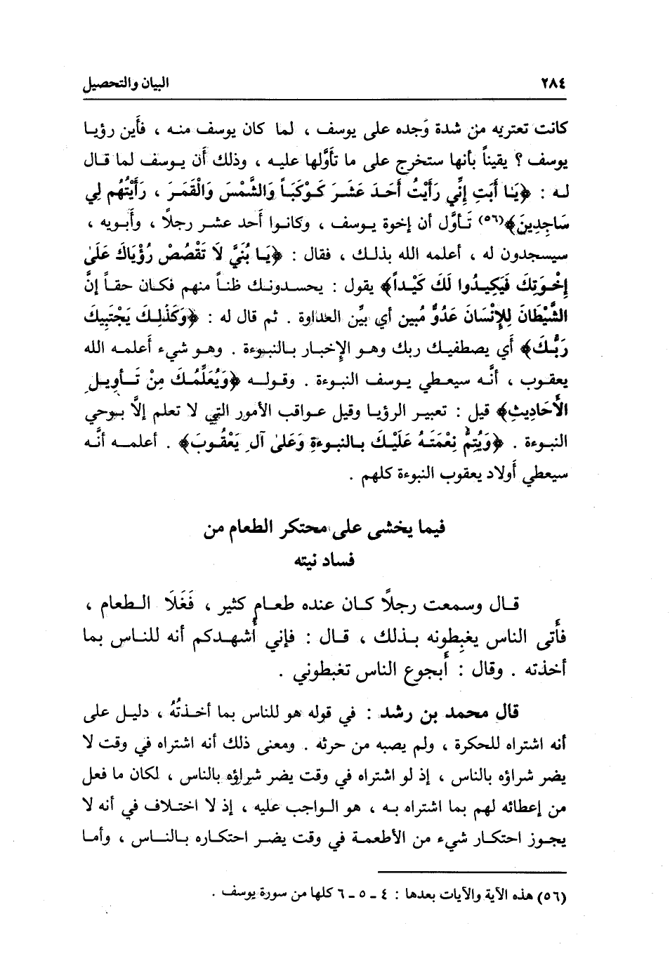 كانت تعتريه من شدة وجده على يوسف، لما كان يوسف منه، فأين رؤيا يوسف؟ يقينا بأنها ستخرج على ما تأولها عليه، وذلك أن يوسف لما قال له: {يَا أَبَتِ إِنِّي رَأَيْتُ أَحَدَ عَشَرَ كَوْكَبًا وَالشَّمْسَ وَالْقَمَرَ رَأَيْتُهُمْ لِي سَاجِدِينَ} [يوسف: 4] تأول أن إخوة يوسف، وكانوا أحد عشر رجلا، وأبويه سيسجدون له، أعلمه الله بذلك، فقال: {يَا بُنَيَّ لا تَقْصُصْ رُؤْيَاكَ عَلَى إِخْوَتِكَ فَيَكِيدُوا لَكَ كَيْدًا} [يوسف: 5] يقول: يحسدونك ظنا منهم، فكان حقا، {إِنَّ الشَّيْطَانَ لِلإِنْسَانِ عَدُوٌّ مُبِينٌ} [يوسف: 5] أي بين العداوة. ثم قال له: {وَكَذَلِكَ يَجْتَبِيكَ رَبُّكَ} [يوسف: 6] أي يصطفيك ربك، وهو الإخبار بالنبوءة. وهو شيء أعلمه الله يعقوب، أنه سيعطي يوسف النبوءة. وقوله {وَيُعَلِّمُكَ مِنْ تَأْوِيلِ الأَحَادِيثِ} [يوسف: 6] قيل: تعبير الرؤيا، وقيل: عواقب الأمور التي لا تعلم إلا بوحي النبوءة. {وَيُتِمُّ نِعْمَتَهُ عَلَيْكَ} [يوسف: 6] بالنبوءة {وَعَلَى آلِ يَعْقُوبَ} [يوسف: 6] . أعلمه أنه سيعطي أولاد يعقوب النبوءة كلهم.