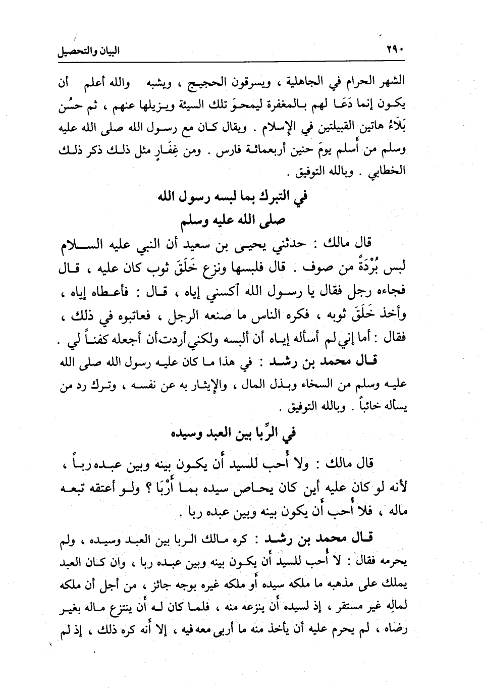 قال محمد بن رشد: في هذا ما كان عليه رسول الله - صَلَّى اللَّهُ عَلَيْهِ وَسَلَّمَ - من السخاء وبذل المال، والإيثار به عن نفسه، وترك رد من يسأله خائبا. وبالله التوفيق.