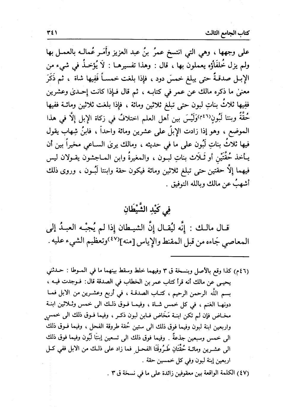 في كيد الشيطان قال مالك: إنه ليقال إن الشيطان إذا لم يجبه العبد إلى المعاصي جاءه من قبل المقنط والإياس [منه] وتعظيم الشيء عليه.