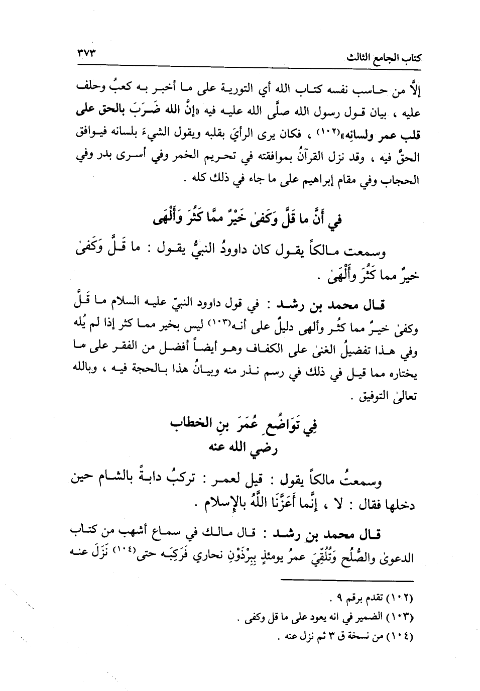 في أن ما قل وكفى خير مما كثر وألهى وسمعت مالكا يقول كان داود النبي يقول: ما قل وكفى خير مما كثر وألهى.