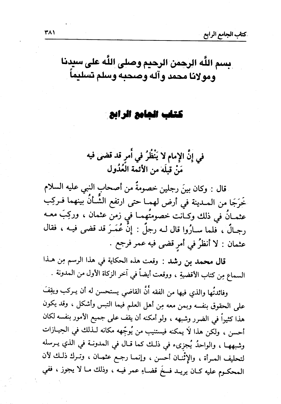 [كتاب الجامع الرابع] [نظرالإمام في أمر قد قضى فيه من قبله من الأئمة العدول]