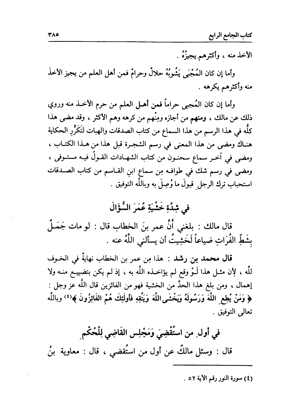 في أول من استقضي ومجلس القاضي للحكم قال: وسئل مالك: عن أول من استقضي، قال: معاوية بن