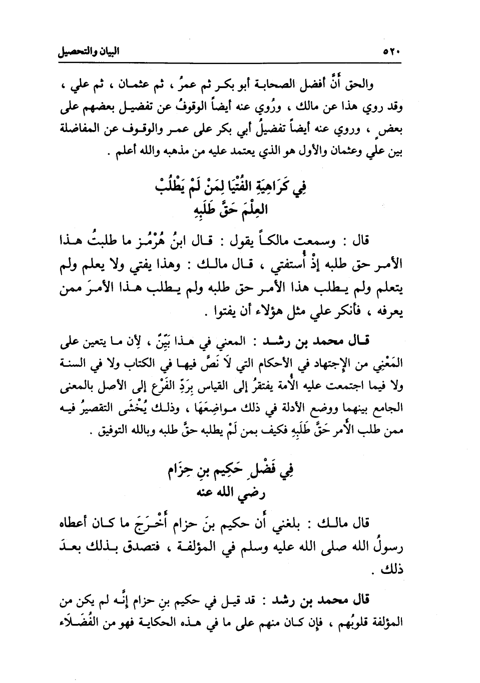 قال محمد بن رشد: قد قيل في حكيم بن حزام: إنه لم يكن من المؤلفة قلوبهم؛ فإن كان منهم على ما في هذه الحكاية فهو من الفضلاء