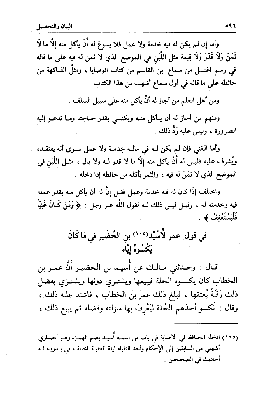 يكسوه إياه قال: وحدثني مالك عن أسيد بن الحضير أن عمر بن الخطاب كان يكسوه الحلة فيبيعها ويشتري دونها ويشتري بفضل ذلك رقبة يعتقها، فبلغ ذلك عمر بن الخطاب، فاشتد عليه ذلك، وقال: نكسو أحدهم الحلة ليعرف بها منزلته وفضله ثم يبيع ذلك،