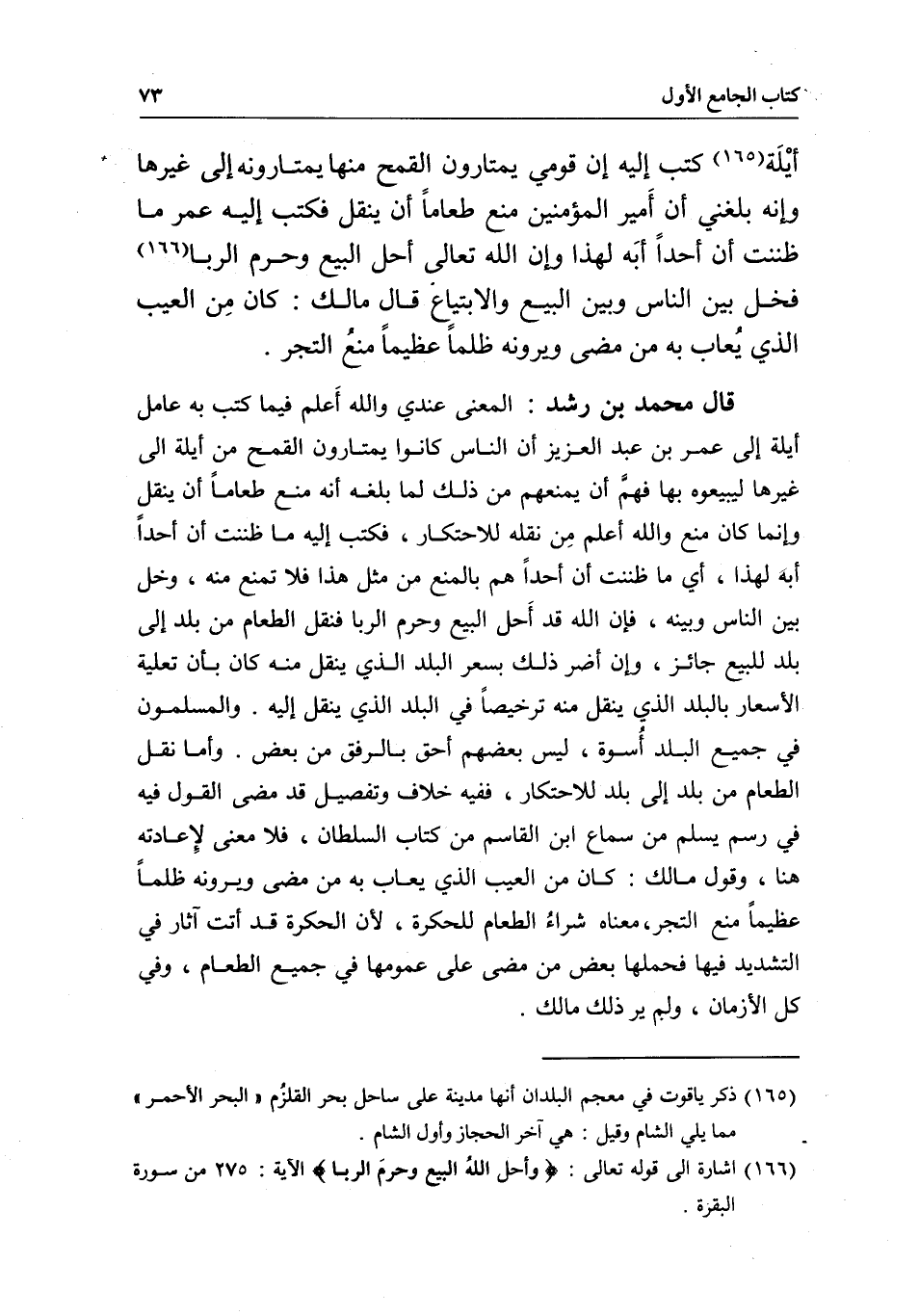 قال مالك: كان مِن العيب الذي يُعاب به من مضى ويرونه ظلماَ عظيماً منعُ التجر.
