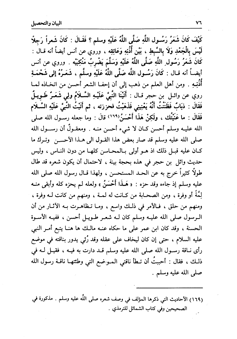 ومعقولٌ أن رسول الله - صَلَّى اللَّهُ عَلَيْهِ وَسَلَّمَ - قد صار بعض هذا القول إلى هذا الأحسن وترك ما كان عليه قبل ذلك؛ إذ هو أولى بالمحاسن كلها من دون الناس، وليس حديث وائل بن حجر في هذه بحجة بينة، لاحتمال أن يكون شعره قد طال طولاً كثيراً خرج به عن الحد المستحسن، ولهذا قال رسول الله - صَلَّى اللَّهُ عَلَيْهِ وَسَلَّمَ - إذ جاءه وقد حزه: " هَذَا أَحْسَنُ "، ولعله لم يحزه كله وأبقى منه لِمَّةً أو وفرة.