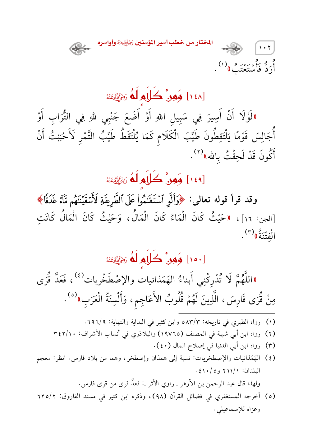 (¬5) أخرجه المستغفري في فضائل القرآن (98)، وذكره ابن كثير في مسند الفاروق: 2/ 625 وعزاه للإسماعيلي.
