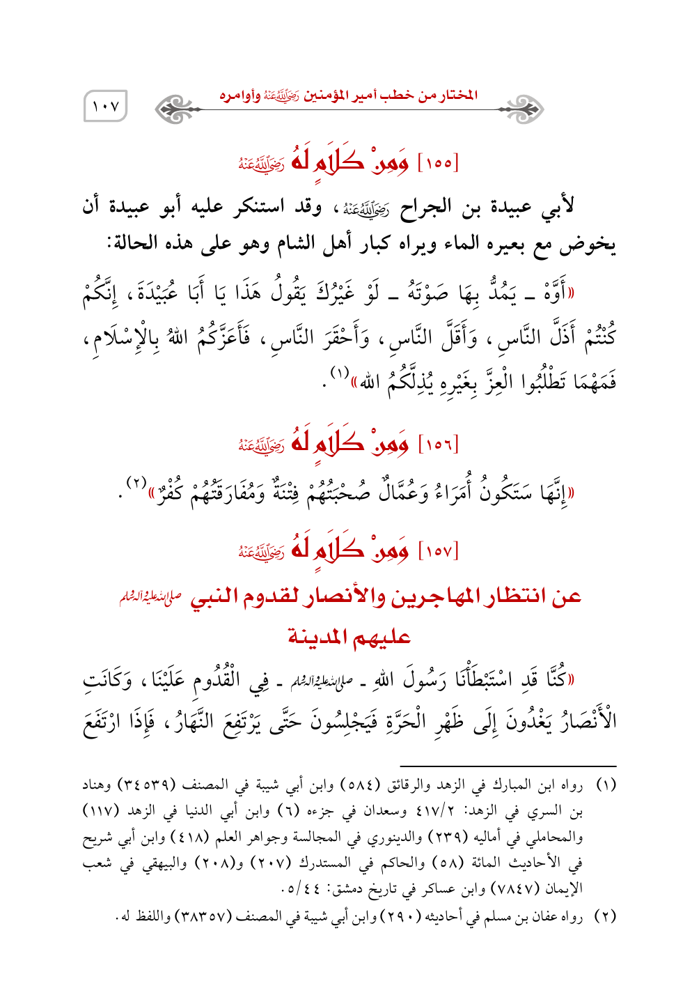 (¬1) رواه ابن المبارك في الزهد والرقائق (584) وابن أبي شيبة في المصنف (34539) وهناد بن السري في الزهد: 2/ 417 وسعدان في جزءه (6) وابن أبي الدنيا في الزهد (117) والمحاملي في أماليه (239) والدينوري في المجالسة وجواهر العلم (418) وابن أبي شريح في الأحاديث المائة (58) والحاكم في المستدرك (207) و (208) والبيهقي في شعب الإيمان (7847) وابن عساكر في تاريخ دمشق: 44/ 5.