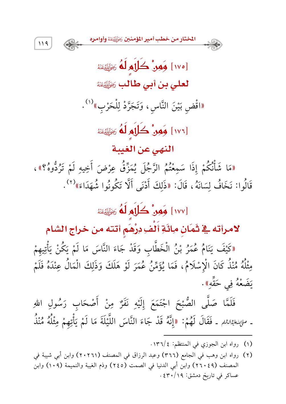 (¬1) رواه ابن الجوزي في المنتظم: 4/ 136.