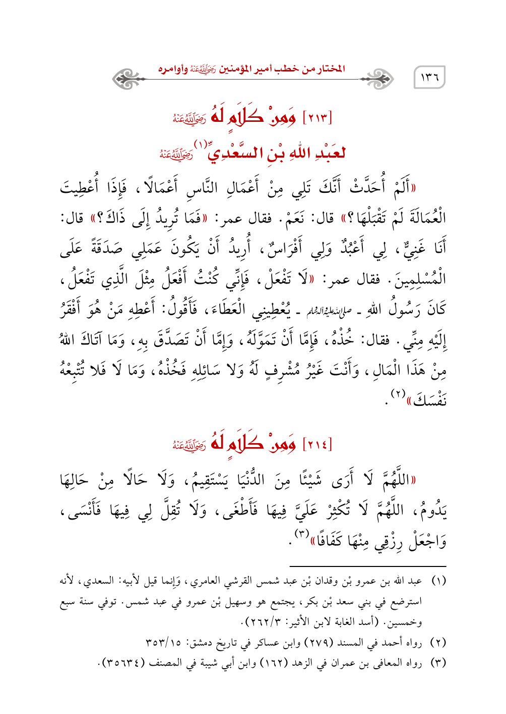 (¬2) رواه أحمد في المسند (279) وابن عساكر في تاريخ دمشق: 15/ 353