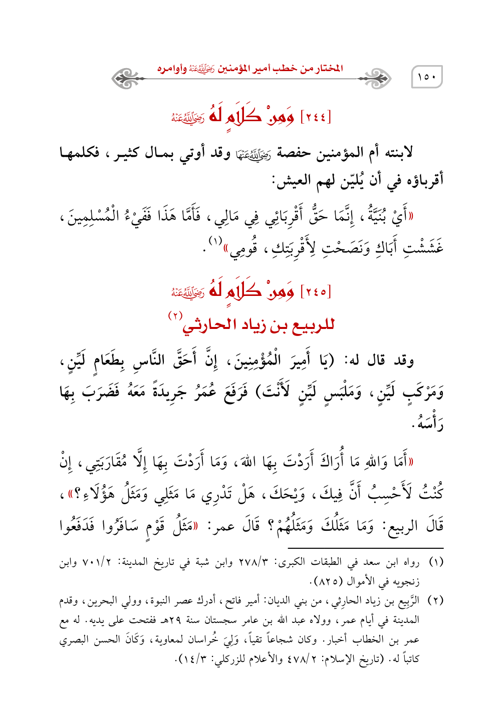 (¬1) رواه ابن سعد في الطبقات الكبرى: 3/ 278 وابن شبة في تاريخ المدينة: 2/ 701 وابن زنجويه في الأموال (825).