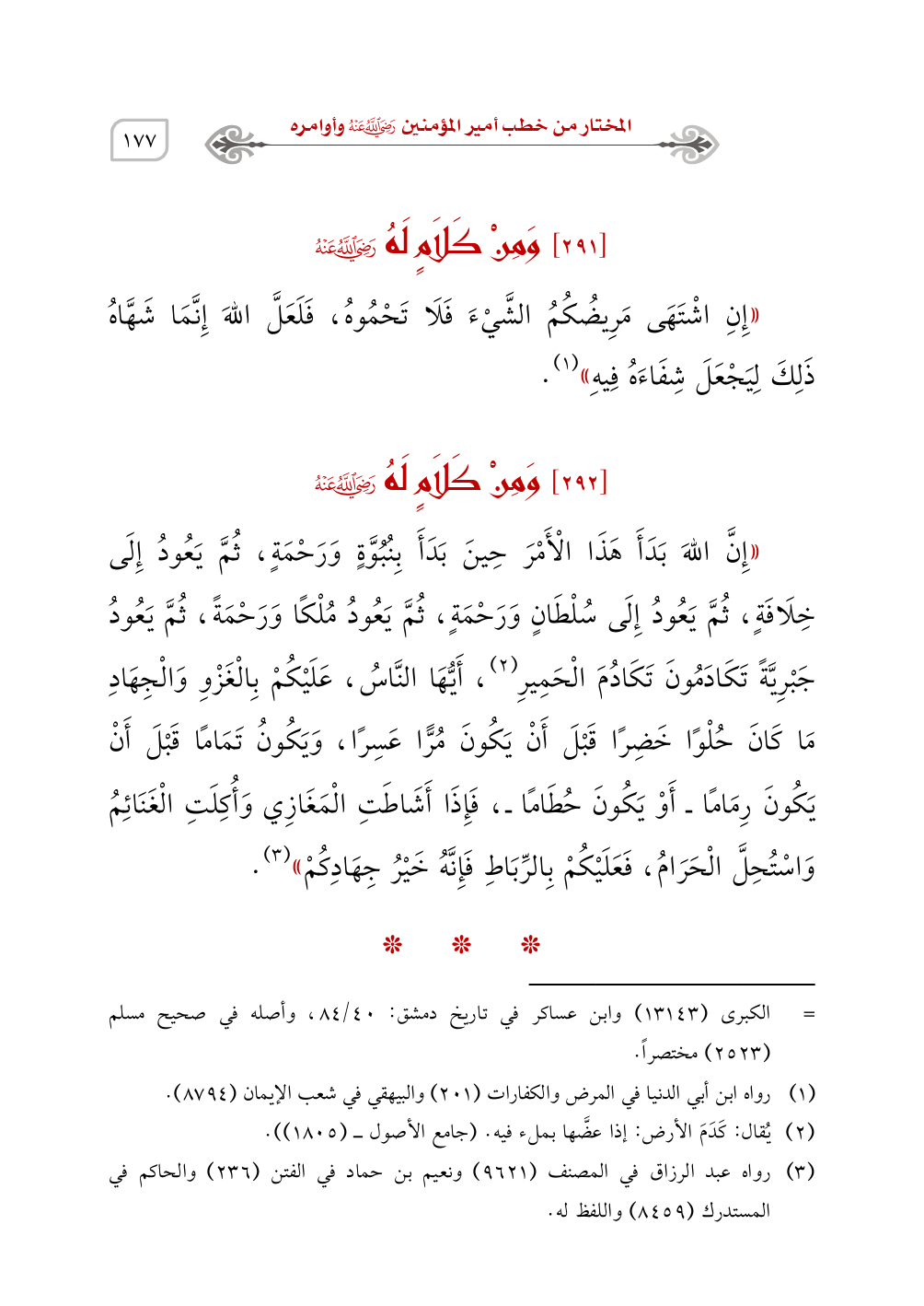 [292] وَمِنْ كَلاَمٍ لَهُ - رَضِيَ اللَّهُ عَنْهُ -
