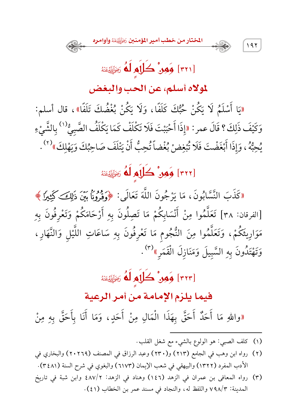 (¬3) رواه المعافى بن عمران في الزهد (146) وهناد في الزهد: 2/ 487 وابن شبة في تاريخ المدينة: 3/ 798 واللفظ له، والنجاد في مسند عمر بن الخطاب (41).