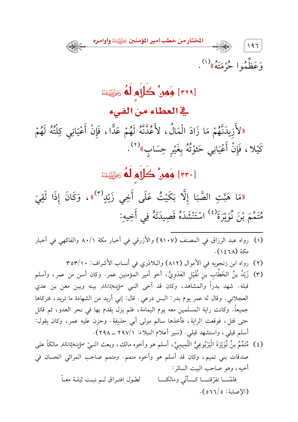(¬2) رواه ابن زنجويه في الأموال (812) والبلاذري في أنساب الأشراف: 10/ 353