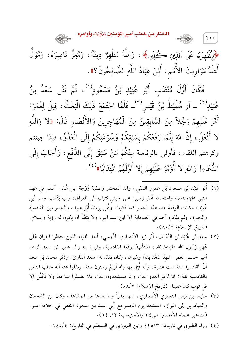 (¬4) رواه الطبري في تاريخه: 3/ 445 وابن الجوزي في المنتظم في التاريخ: 4/ 145.