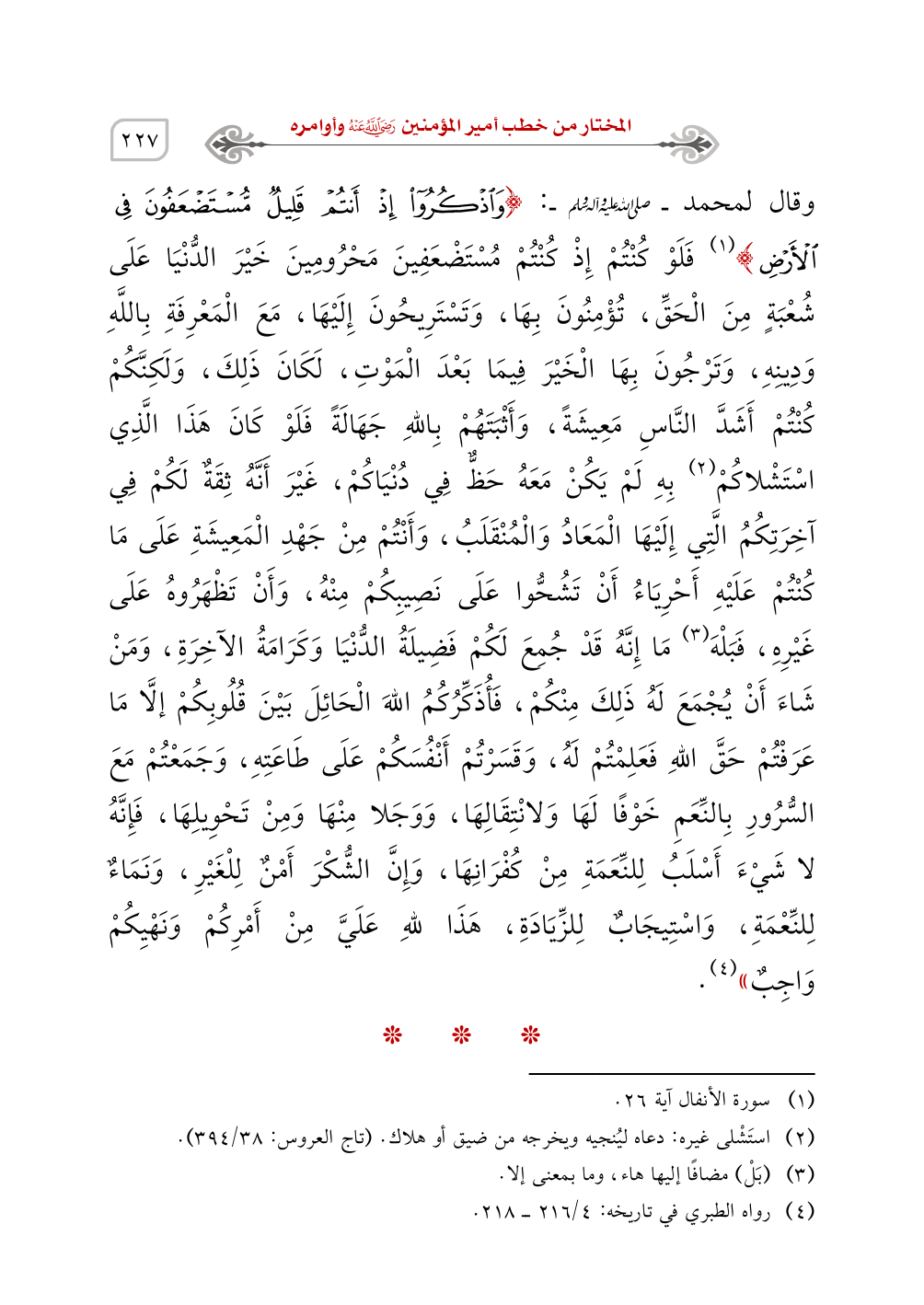 (¬4) رواه الطبري في تاريخه: 4/ 216 - 218.
