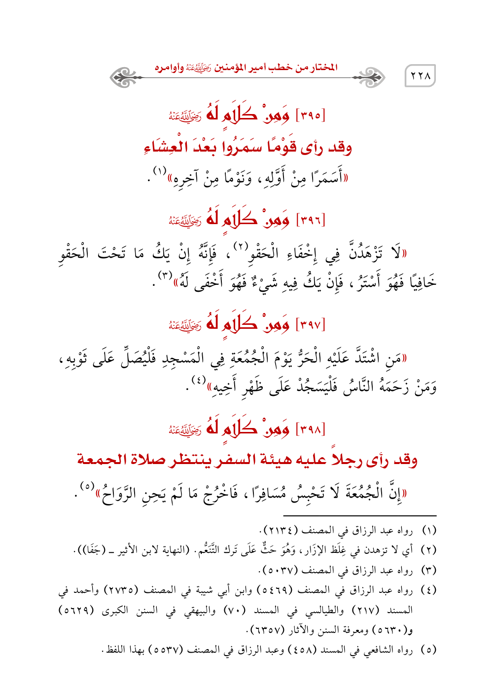 (¬4) رواه عبد الرزاق في المصنف (5469) وابن أبي شيبة في المصنف (2735) وأحمد في المسند (217) والطيالسي في المسند (70) والبيهقي في السنن الكبرى (5629) و (5630) ومعرفة السنن والآثار (6357).