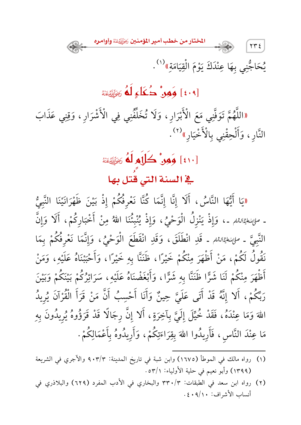 (¬2) رواه ابن سعد في الطبقات: 3/ 330 والبخاري في الأدب المفرد (629) والبلاذري في أنساب الأشراف: 10/ 409.