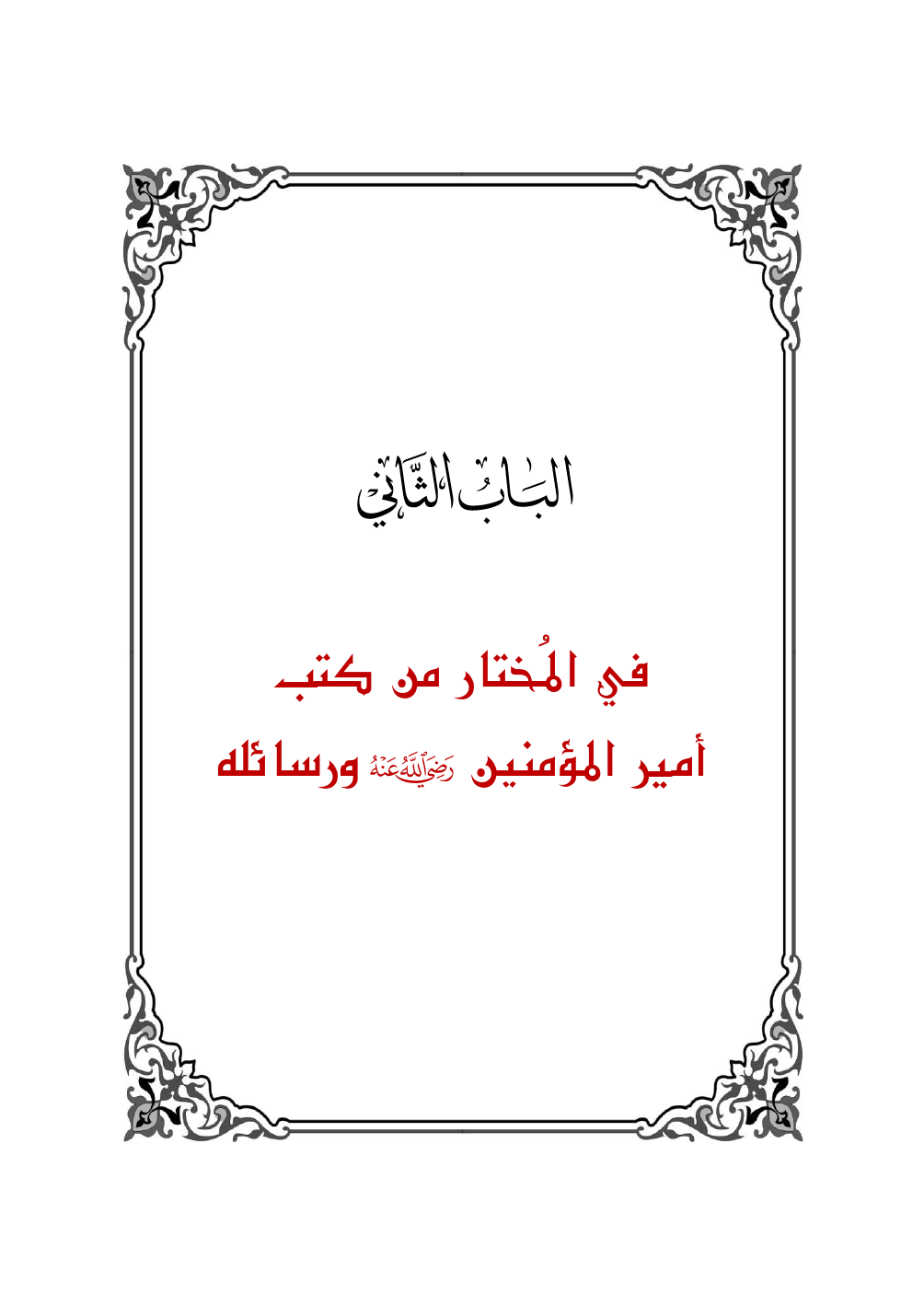 الباب الثاني: في المُختار من كتب أمير المؤمنين - رَضِيَ اللَّهُ عَنْهُ - ورسائله
