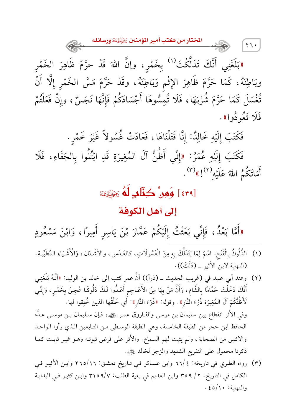 ((أَمَّا بَعْدُ، فَإِنِّي بَعَثْتُ إِلَيْكُمْ عَمَّارَ بْنَ يَاسِرٍ أَمِيرًا، وَابْنَ مَسْعُودٍ