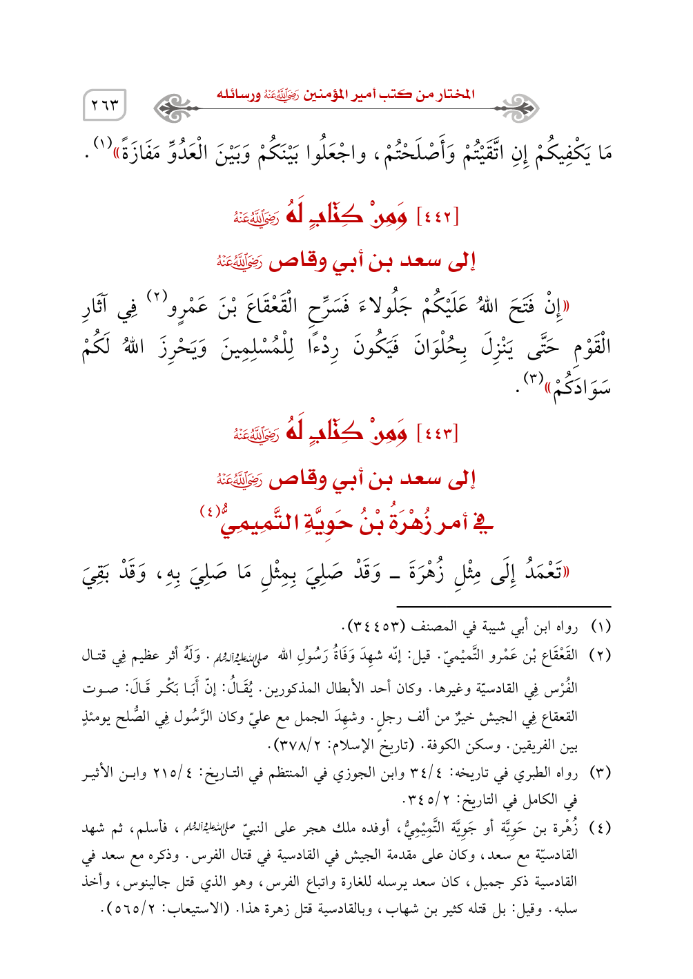 [443] وَمِنْ كِتَابٍ لَهُ - رَضِيَ اللَّهُ عَنْهُ -