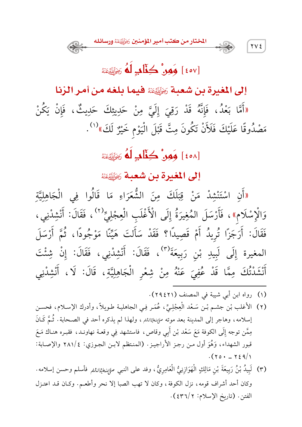 إلى المغيرة بن شعبة - رَضِيَ اللَّهُ عَنْهُ -