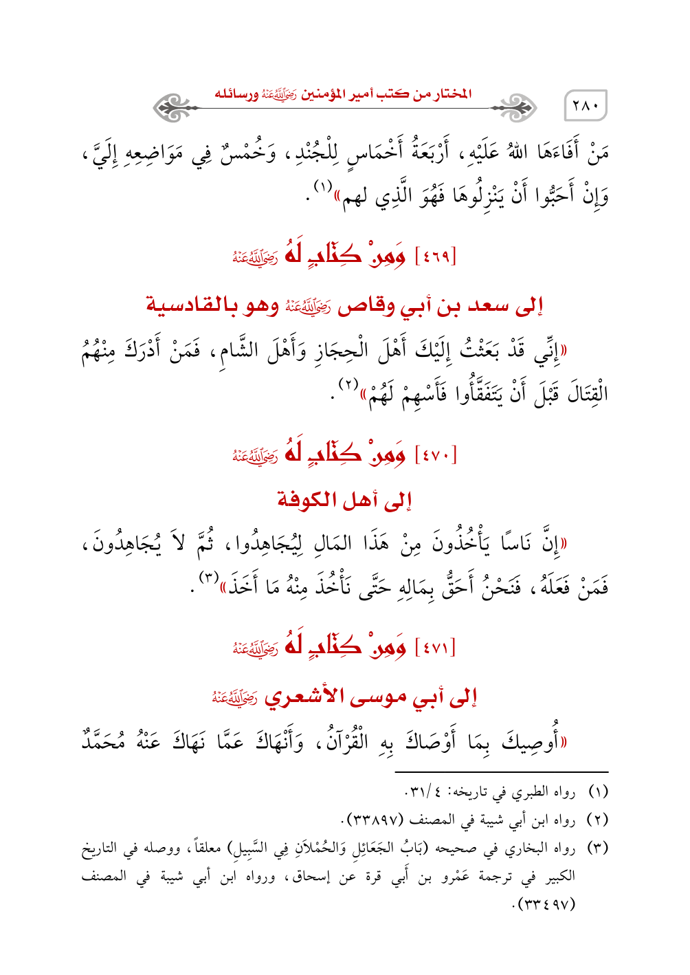إلى أبي موسى الأشعري - رَضِيَ اللَّهُ عَنْهُ -