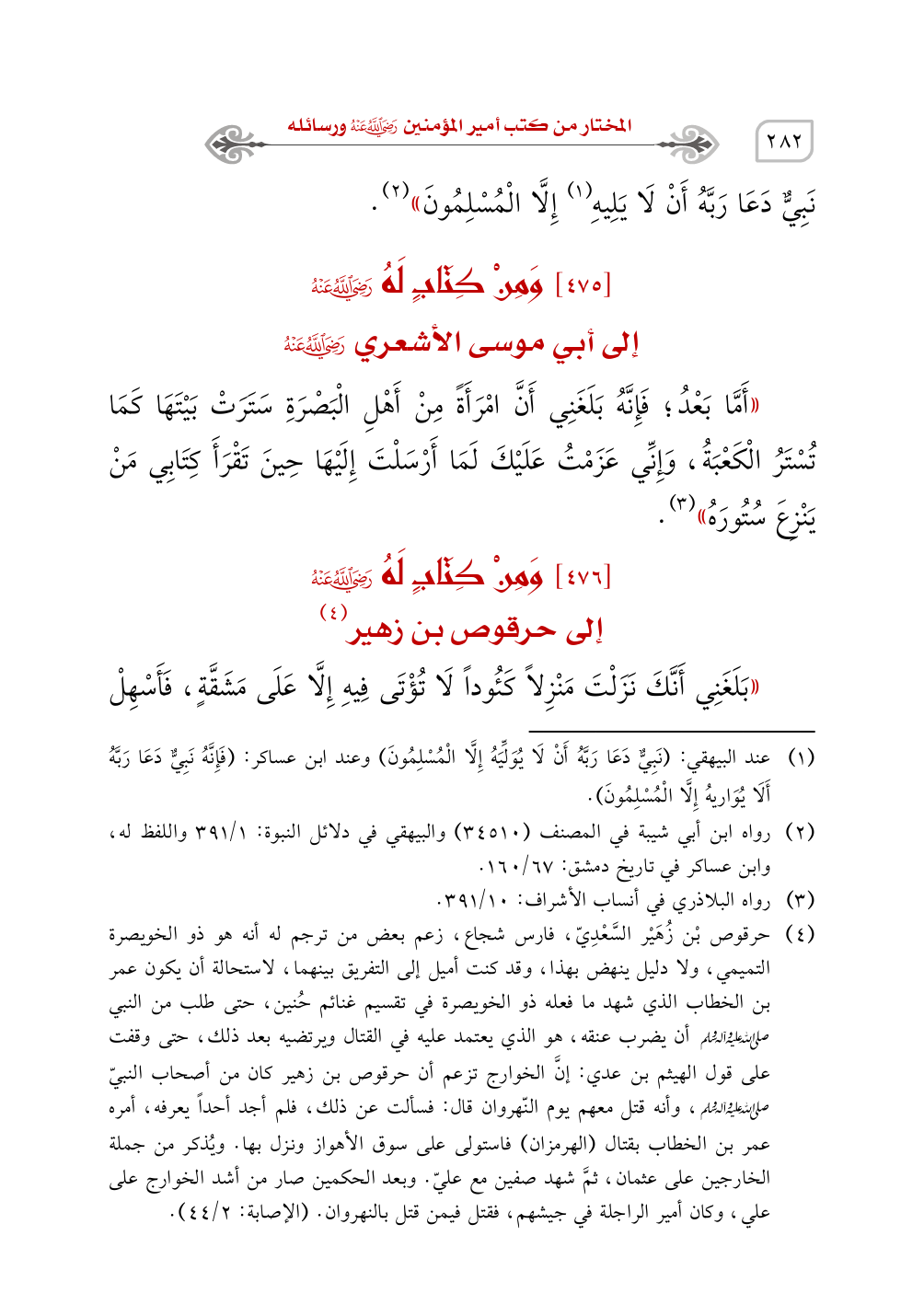 [476] وَمِنْ كِتَابٍ لَهُ - رَضِيَ اللَّهُ عَنْهُ -