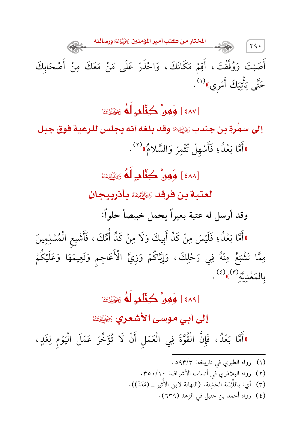 [489] وَمِنْ كِتَابٍ لَهُ - رَضِيَ اللَّهُ عَنْهُ -
