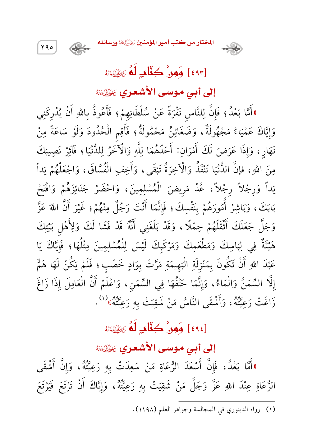 ((أَمَّا بَعْدُ، فَإِنَّ أَسْعَدَ الرُّعَاةِ مَنْ سَعِدَتْ بِهِ رَعِيَّتُهُ، وَإِنَّ أَشْقَى الرُّعَاةِ عِنْدَ اللهِ عَزَّ وَجَلَّ مَنْ شَقِيَتْ بِهِ رَعِيَّتُهُ، وَإِيَّاكَ أَنْ تَرْتَعَ فَيَرْتَعَ