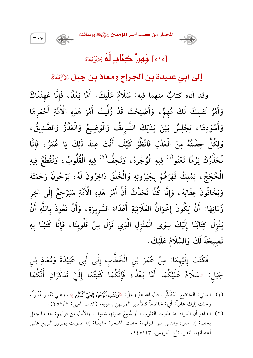 إلى أبي عبيدة بن الجراح ومعاذ بن جبل - رَضِيَ اللَّهُ عَنْهُمَا -