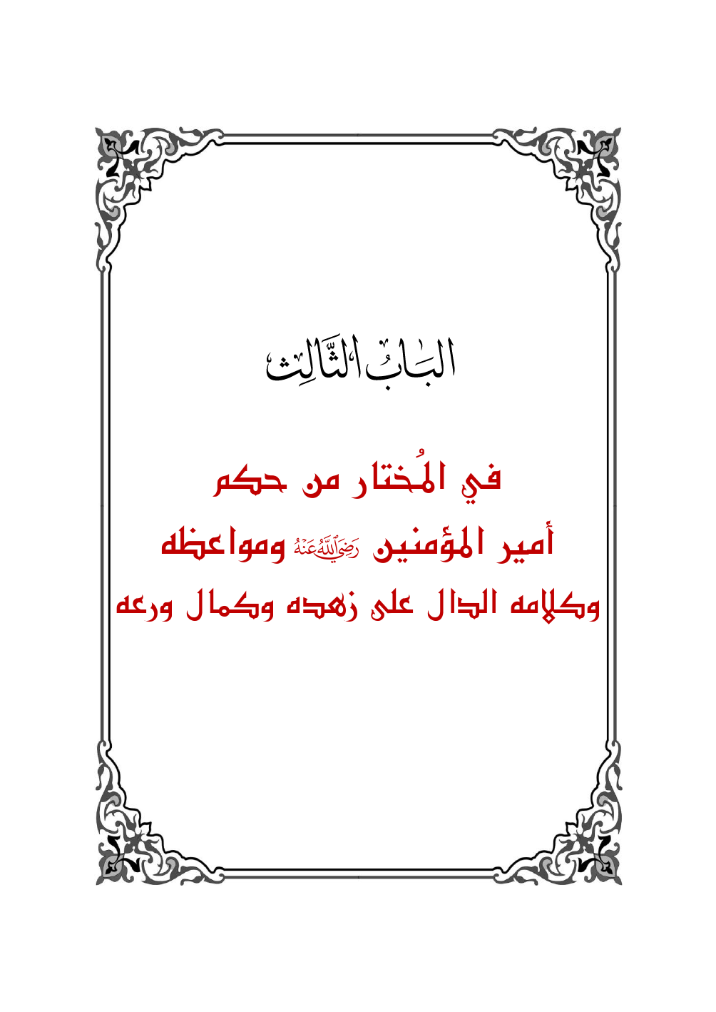 الباب الثالث: في المُختار من حكم أمير المؤمنين - رَضِيَ اللَّهُ عَنْهُ - ومواعظه وكلامه الدال على زهده وكمال ورعه