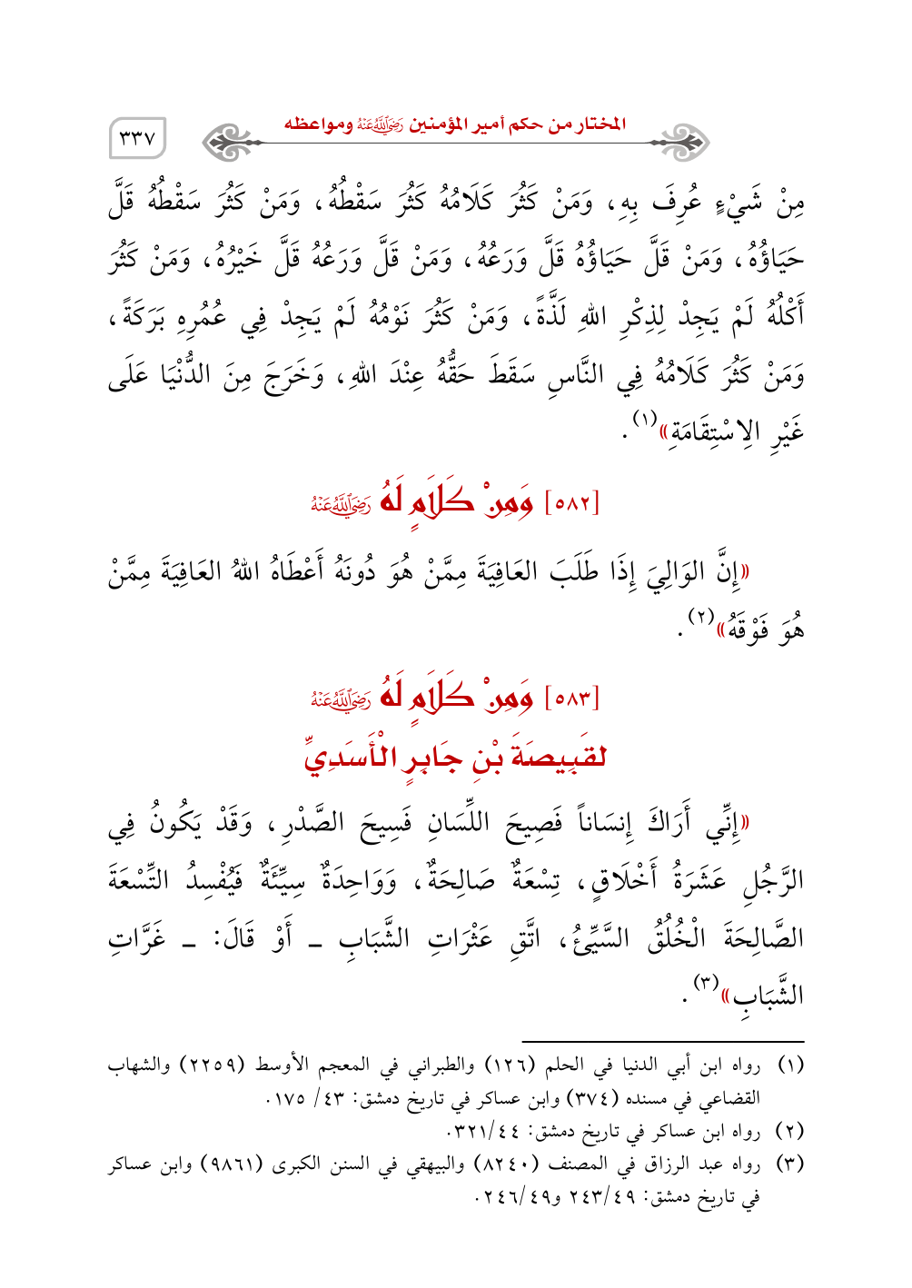 (¬2) رواه ابن عساكر في تاريخ دمشق: 44/ 321.