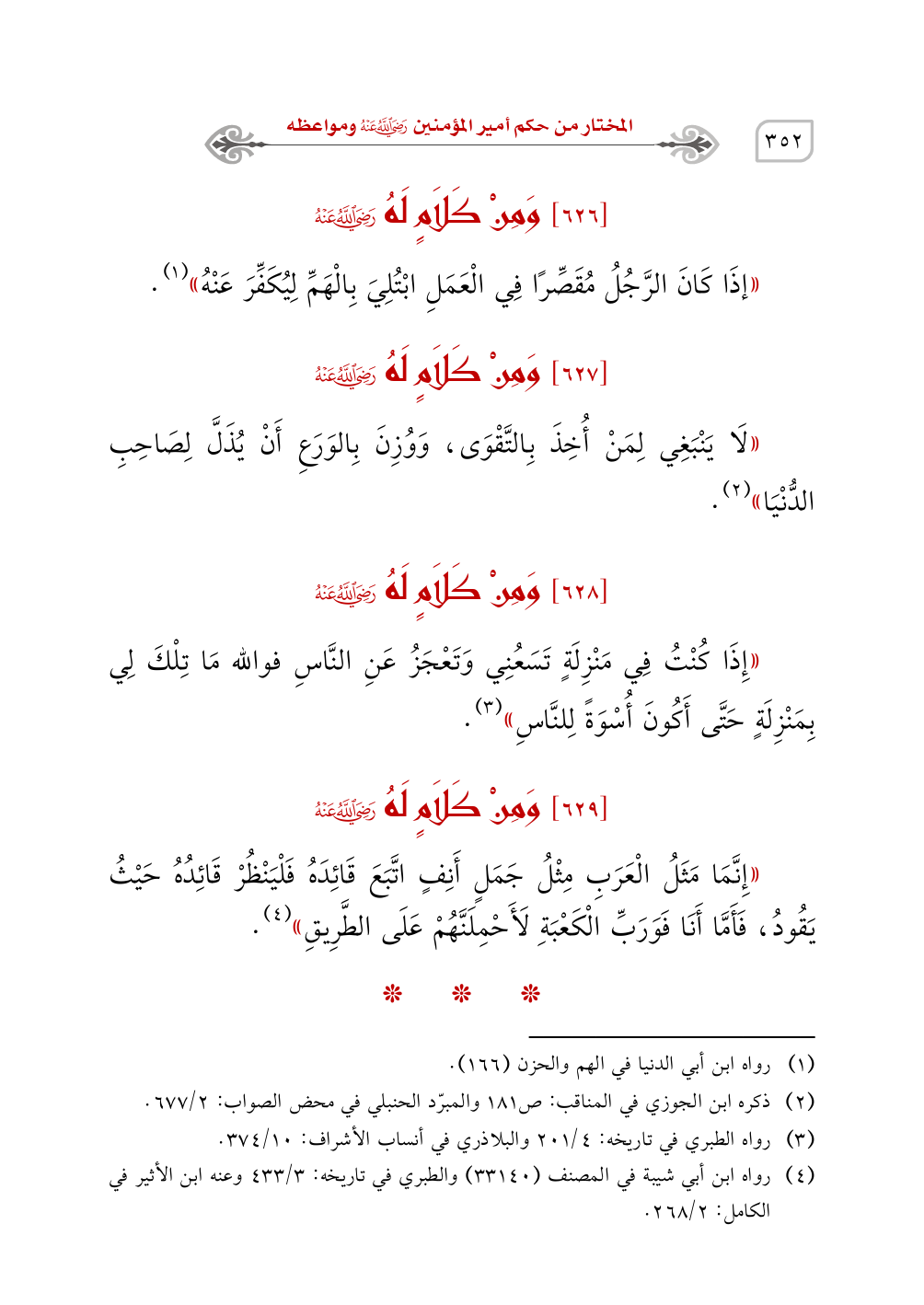 (¬4) رواه ابن أبي شيبة في المصنف (33140) والطبري في تاريخه: 3/ 433 وعنه ابن الأثير في الكامل: 2/ 268.