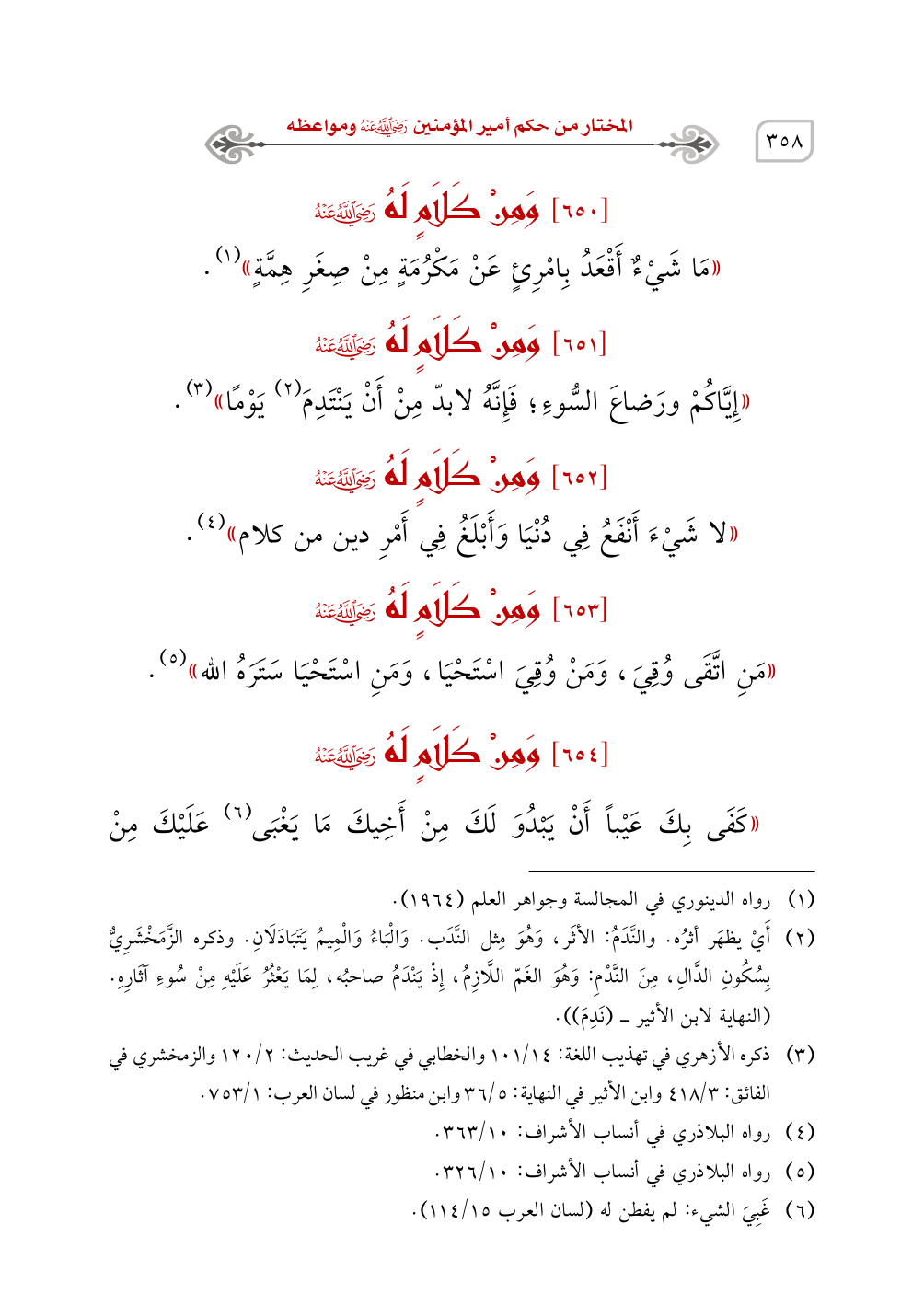 (¬1) رواه الدينوري في المجالسة وجواهر العلم (1964).