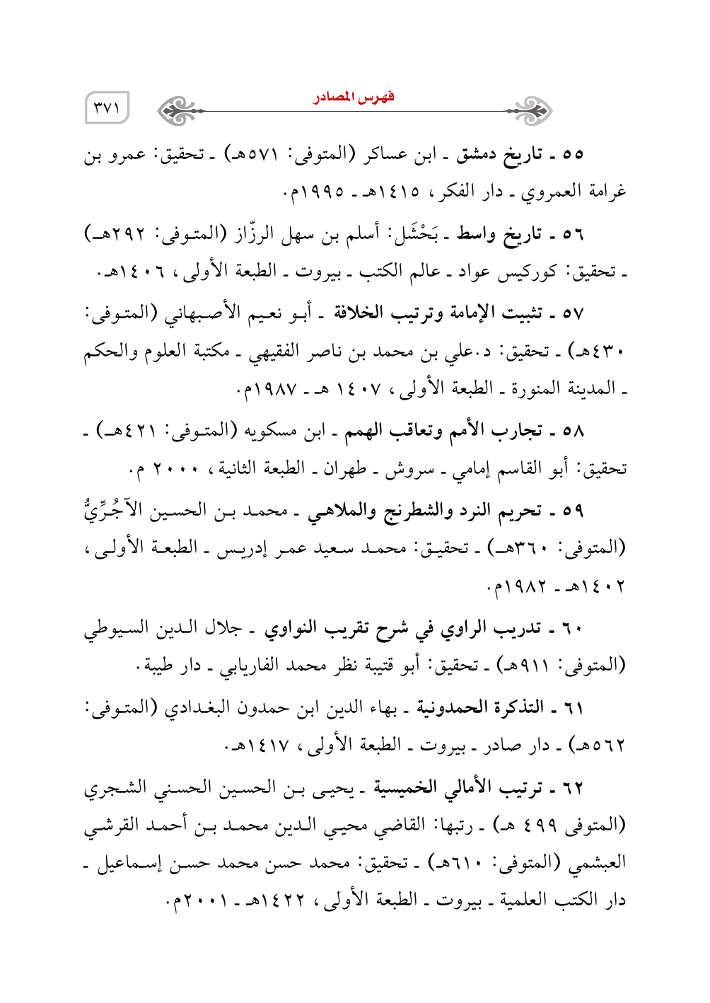 58 - تجارب الأمم وتعاقب الهمم - ابن مسكويه (المتوفى: 421هـ) - تحقيق: أبو القاسم إمامي - سروش - طهران - الطبعة الثانية، 2000 م.