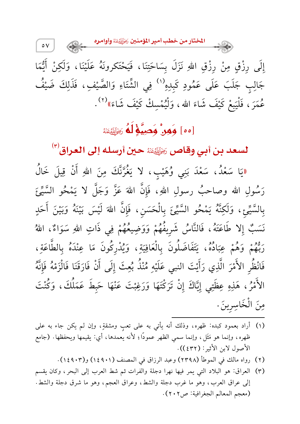 لسعد بن أبي وقاص - رَضِيَ اللَّهُ عَنْهُ - حين أرسله إلى العراق (¬3)