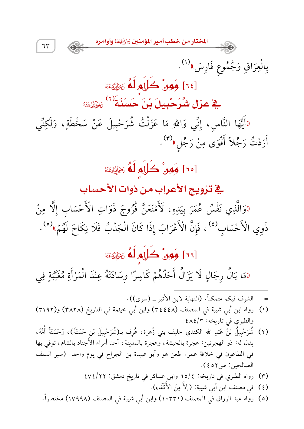 (¬3) رواه الطبري في تاريخه: 4/ 65 وابن عساكر في تاريخ دمشق: 22/ 474